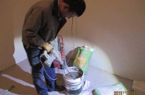 3、渗漏位置喷涂YYA防水抗渗浆料1遍,保证大面积不漏水